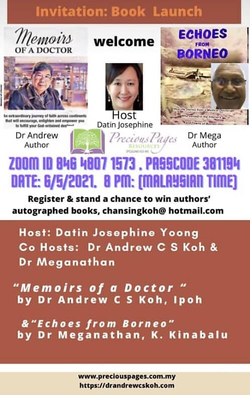 Precious Pages is honoured to host the joint book launches by 2 medical doctors who have sacrificed much over the years to serve the people and now want to inspire others through their writings. Their lives testify to the faithfulness and goodness of God and His hand upon their lives.